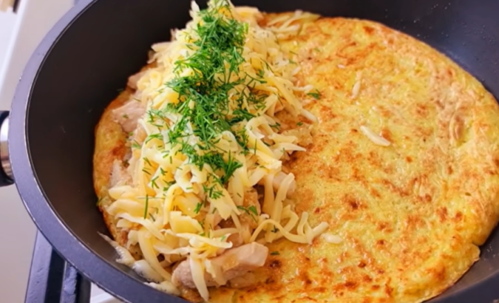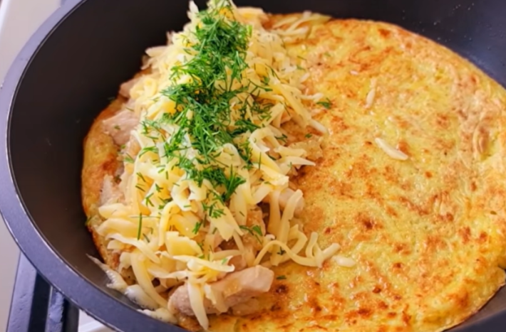 Na rozehřátou pánev nalijte trochu oleje a dále na ní vložte zhruba polovinu těsta. To rozetřete až ke krajům, aby tvořilo větší, stejně vysokou placku. Když se začne dělat v okrajích, bramborák otočte. Na jeho polovinu naneste masovou směs s cibulí a posypte ji sýrem a koprem. Bramborák pečte po dobu asi 7 minut. Poté přehněte vyndejte z pánve a servírujte. S druhou polovinou těsta udělejte to stejné a nachystejte i druhou porci jídla. To bude nejenom skvěle chutnat, ale i dobře zasytí.