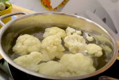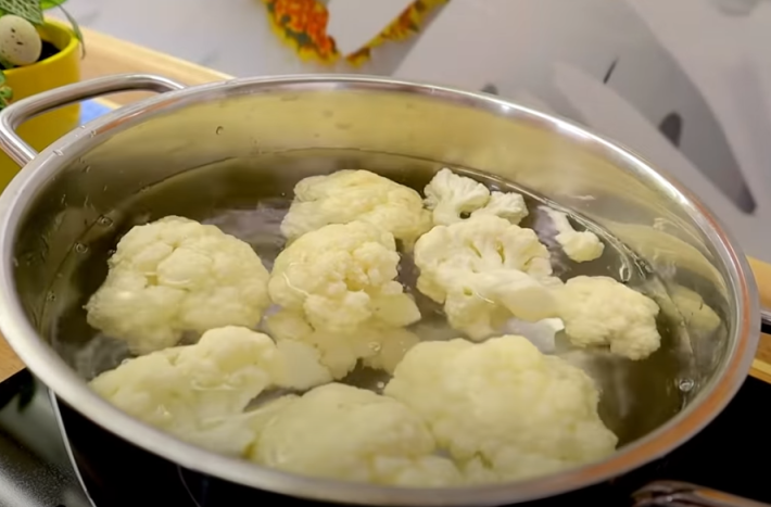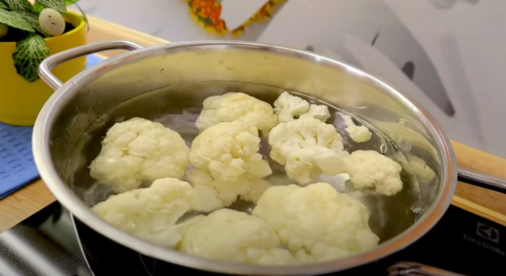 Začněte tím, že si omyjete květák, očistíte ho a rozdělíte na jednotlivé růžičky. Ty pak vložte do velkého hrnce s vodou, přilijte lžíci jablečného octa, vsypte sůl a vložte také jeden loupaný česnek. Zeleninu vařte asi deset minut na středním ohni. Mezitím si připravte těstíčko na obalování.