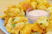 Chystá se k vám návštěva, která dává přednost spíš rostlinné stravě před tou masovou? Potom připravte lahůdku v podobě smaženého květáku v křupavém těstíčku. Když tuto chuťovku doplníte o domácí dip, všichni se budou oblizovat!