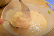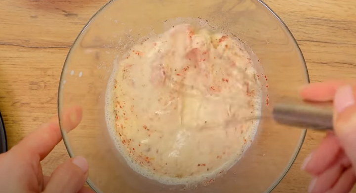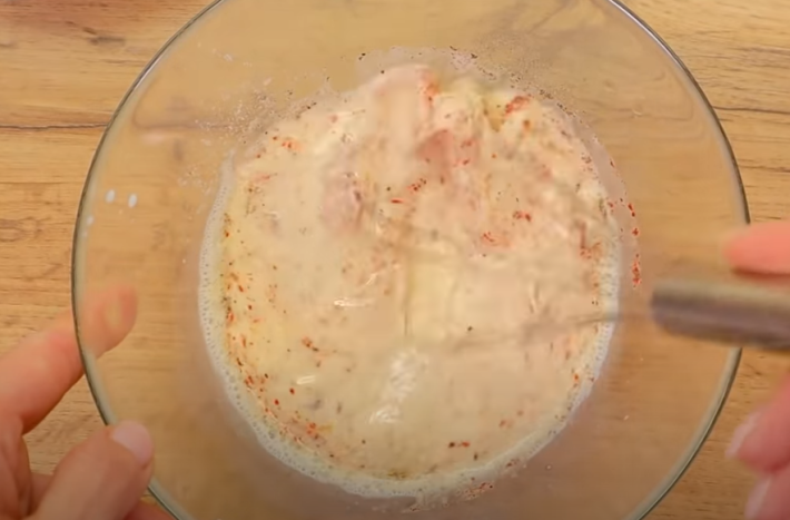 Nyní si rozmíchejte v misce vejce spolu s mlékem, solí, pepřem, sladkou mletou paprikou, sušeným česnekem a jemně nasekanou petrželkou. Nakonec ještě těstíčko zahustěte hladkou moukou. Dále uvařený květák přeceďte, nechte okapat a po zchladnutí obalujte v připraveném těstě.