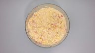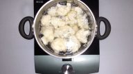 Květák rozeberte na růžičky a uvařte je ve vroucí osolené vodě přibližně 10 minut. Poté je sceďte a nechte je vychladnout. Následně je nakrájejte na menší kousky a přendejte je do velké mísy.