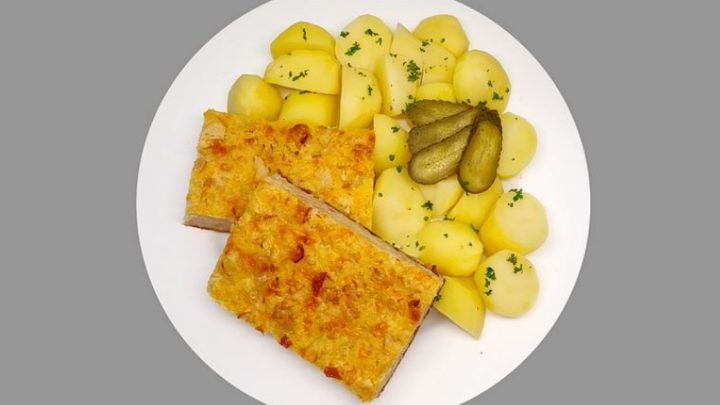 Po upečení nechte nákyp mírně vychladnout a poté ho nakrájejte. Podávejte ho s vařenými bramborami posypanými petrželkou.