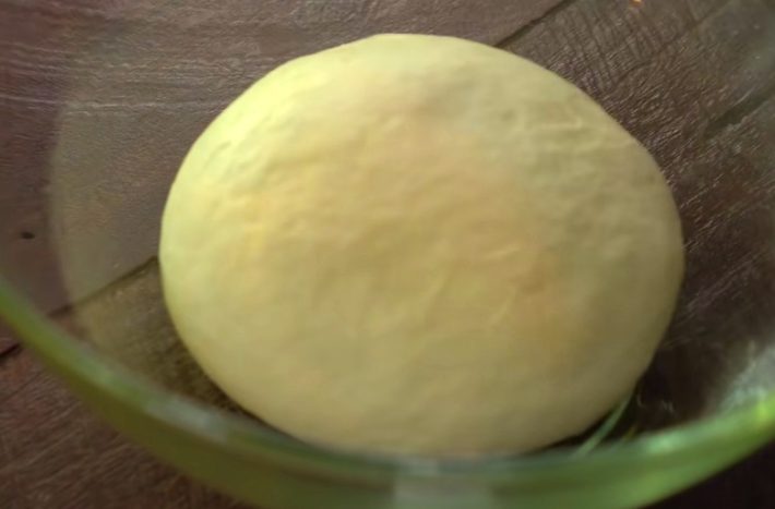 Do větší mísy nalijte teplou vodu a nasypejte do ní droždí a cukr, směs promíchejte. Nasypejte do ní mouku a sůl, mírně promíchejte a přilijte ke směsi mléko. Po dalším promíchání těsto zpracujte ručně a uhněťte ho. Během tohoto procesu k němu přilijte olivový olej a dál pokračujte ve hnětení. Mísu vymažte olejem, uhnětené těsto do ní dejte, zakryjte ji potravinářskou folií a vyčkejte, než těsto nakyne.