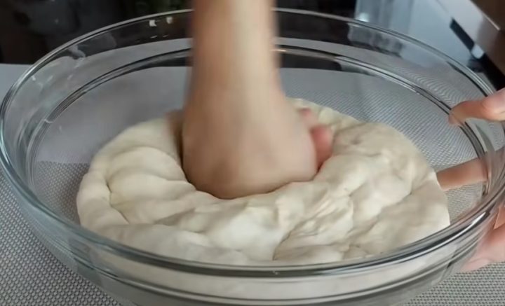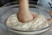 Dejte do mísy vlažné mléko, cukr, droždí, olej, sůl a bílek z vejce (žloutek si schovejte na později) a vše promíchejte. Pak přidejte prosátou hladkou mouku a vypracujte hladké nelepivé těsto. Přikryjte ho a nechte 40 minut kynout.