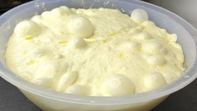 V míse smíchejte mléko, droždí a cukr, mísu přikryjte čistou utěrkou a nechte vzejít kvásek – potrvá to přibližně 15 minut.