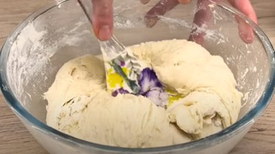 Kvásek následně promíchejte a přidejte do něj vaječné bílky s 90 g cukru a olejem. Jakmile vznikne hladká směs, vsypte do ní mouku se solí.
