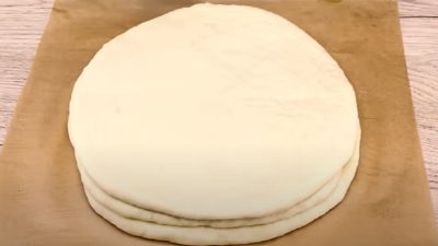 Z každého bochánku vyválejte plát o průměru 25 cm, který položte na plech, pokrytý pečicím papírem. Plát potřete rostlinným olejem a přikryjte ho druhým plátem.