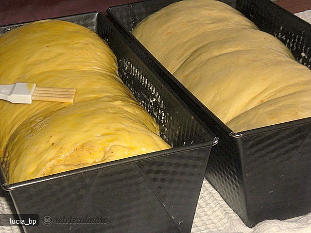 Oba polotovary závinů nechte v plechu s pečícím papírem vykynout asi 10 až 20 minut. Nakonec povrch těsta pomažte rozšlehaným vaječným žloutkem s trochou mléka a dejte péct do trouby na 50 až 60 minut.