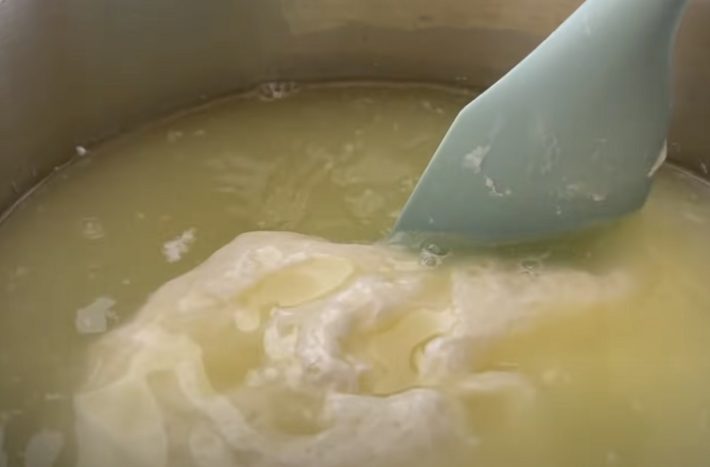 Nyní syrovátku znovu zahřejte s trochou soli a dobře promíchejte.