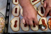 Vrstvení směsi na pečivo a zapékání chlebíčků