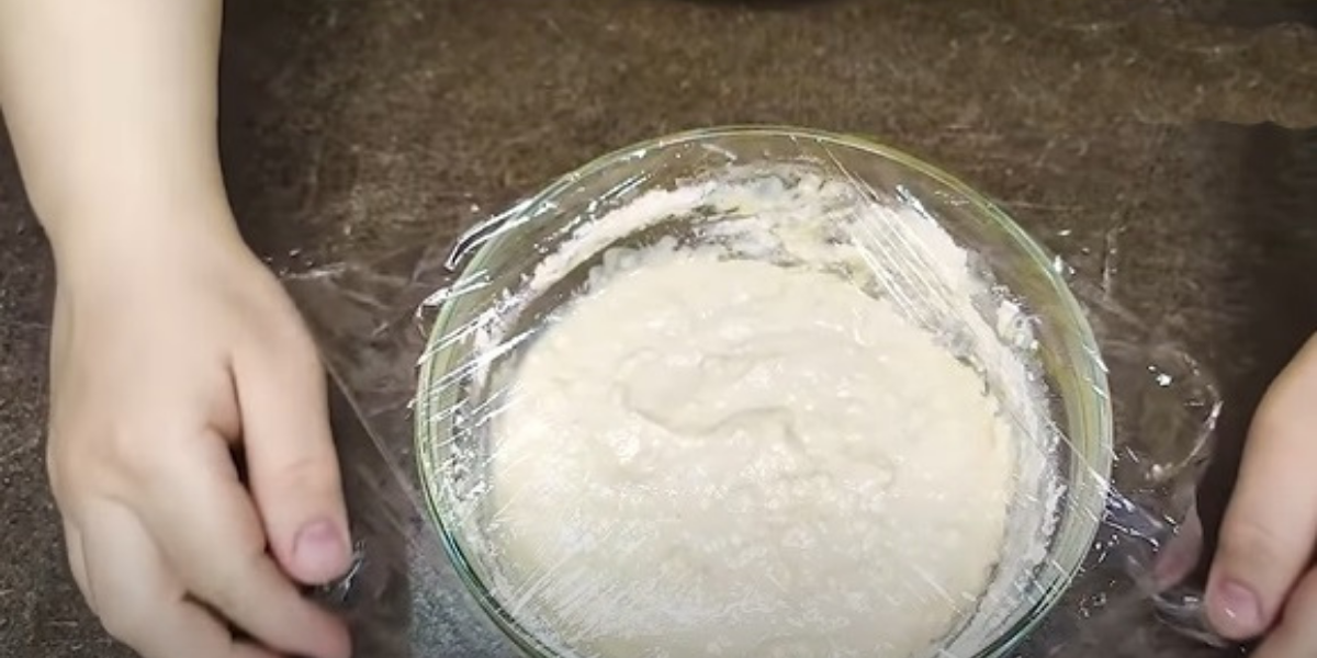 Rozpusťte droždí v teplém mléce. Promíchejte. Přidejte 1 sklenici mouky z celkového množství a promíchejte. Směs zakryjte fólií a nechte 15 minut stát.