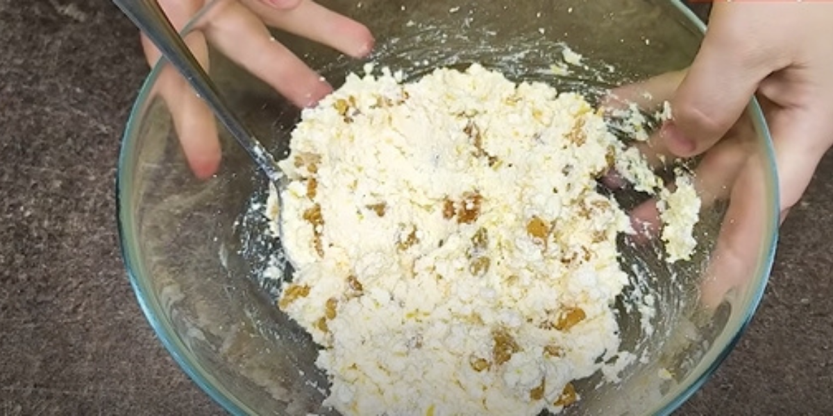 Dejte těsto na pracovní plochu a pokračujte v hnětení dalších 5 – 10 minut, dokud nebude těsto měkké, hladké a nelepivé. Dejte ho do misky, pomažte olejem, zakryjte a nechte hodinu kynout. Mezitím připravte náplň. Do misky dejte tvaroh, žloutek, cukr, rozpuštěné máslo a nastrouhanou citronovou kůru. Dobře promíchejte, přidejte rozinky a znovu promíchejte. Těsto promíchejte a vraťte do misky na další hodinu, aby dále kynulo.