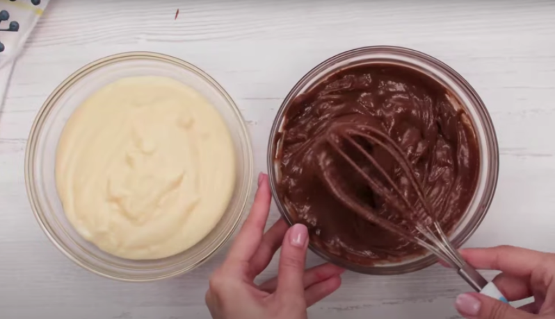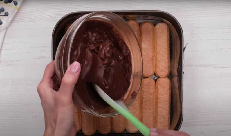 Lahodný dvoubarevný dezert s cukrářskými piškoty a tmavou polevou - postup přípravy