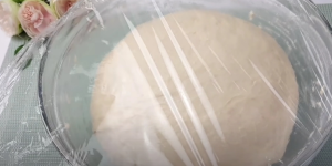 Připravte si velkou mísu a vložte do ní mléko, cukr, suché droždí a důkladně promíchejte. Přidejte rozpuštěné máslo, olej a pokračujte v míchání. Nakonec přidejte sníh z bílků, sůl a mouku. Stěrkou opět promíchejte a snažte se těsto vytvarovat do koule. Poté zakryjte potravinářskou fólií a nechte na teplém místě kynout po dobu asi 1 hodiny.