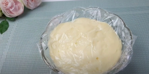 Zatímco bude těsto kynout, můžete si připravit jemný krém. Do hrnce vložte cukr, kukuřičný škrob a stěrkou důkladně promíchejte. Poté přidejte žloutek, mléko a vanilkový cukr. Hrnec dejte na plamen a neustále míchejte, dokud krém nezhoustne. Následně umístěte krém do menší misky a zakryjte ji potravinářskou fólií. Takto připravený krém nechte zcela vychladnout.