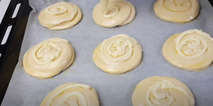 V malé misce rozšlehejte vaječný žloutek s mlékem a touto směsí šneky potřete. Připravený krém dejte do cukrářského sáčku a naneste ho na šneky ve spirále. Vložte do trouby předehřáté na 180 stupňů a pečte po dobu 25 minut. Vyndejte krémové šneky z trouby a nechte zcela vychladnout. Poté je můžete posypat moučkovým cukrem, anebo je nechat neposypané. Skvěle se hodí k čaji nebo kávě a můžete je podávat ihned.