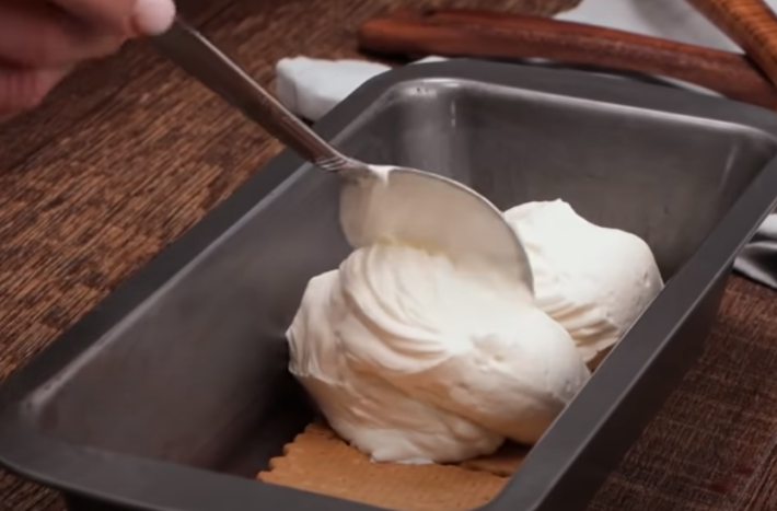 Když jsou sušenky na svém místě, je možné připravit si smetanový základ. A to ze smetany a dále kondenzovaného mléka. Obojí se nalije do misky a pomocí ručního šlehače dojde k vzájemnému mísení a šlehání. To by mělo trvat do doby, než vznikne krém požadované konzistence. Ta by měla být primárně tuhá a měla by co možná nejlépe držet svůj tvar.