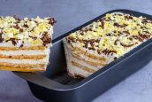 Takto pokračujte neustále dokola až do doby, kdy vám dojde jak krém, a sušenky. Důležité je si pamatovat to, že tou poslední vrstvou bude vždy ta krémová. I ta by měla být dokonale uhlazena. Když je základ pro nepečený dezert hotový, vložte formu do ledničky a nechte zhruba jednu hodinu tuhnout.