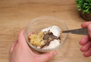 Do menší misky vložte tři polévkové lžíce zakysané smetany nebo bílého jogurtu (popřípadě je můžete nahradit zcela nebo jen částečně majonézou či tatarskou omáčkou). Posypejte trochou soli a mletého černého pepře a k této směsi prolisujte také dva nebo tři očištěné stroužky česneku. Směs důkladně promíchejte a zapracujte ji do ingrediencí v salátové míse, aby se úplně obalily a promísily. Hotový salát nechte chvíli vychladit a odležet v lednici a s velkou chutí podávejte.