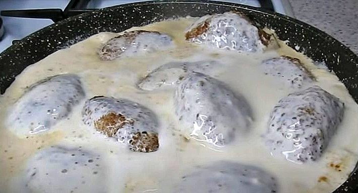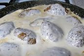 Když jsou karbanátky opečené ze všech stran, zalijte je v pánvi omáčkou tak, aby byly všechny úplně ponořené. Přiklopte pánev pokličkou, ztlumte žár na mírnou úroveň a pokračujte ve vaření dalších 20 minut.