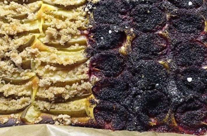 Troubu si rozehřejte na 200 °C. Koláč pečte zhruba půl hodiny, velmi záleží na vaší troubě a šťavnatosti ovoce, nejlepší je se řídit pohledem, případně zatlačením na povrch koláče, zda je vše řádně propečené. Po dopečení ho nechte vychladnout a servírujte.