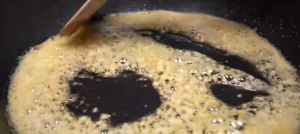 Oloupejte dva stroužky česneku, každý z nich plochou nože rozmáčkněte a pak nasekejte najemno. V pánvi, kde jste předtím smažili filety, rozpusťte kousek másla a vhoďte na něj opéct česnek, dokud nezačne vonět, což bude trvat kolem jedné minuty. Dejte pozor, abyste česnek nepřipálili, pak by zhořkl a zkazil by výslednou chuť pokrmu.