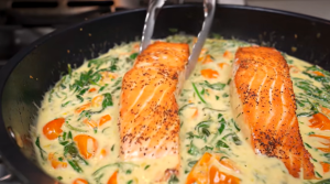 Losos ve smetanové omáčce s cherry rajčátky a baby špenátem - postup přípravy