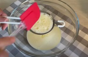 Poslední mandarinku spolu s vejci rozšlehejte tyčovým mixérem a přelijte směs do mísy přes síto, aby byla jemná a nebyly v ní kousky ovoce. Přidejte ke směsi cukr, olej, sůl, vodu, mouku, prášek do pečiva, nastrouhanou kůru z jedné mandarinky a vymíchejte hladké těsto.