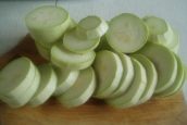 Umyjte cuketu, odstraňte stopky a nakrájejte ji na plátky. Oloupejte česnek a nakrájejte ho na kousky. Malé stroužky můžete použít celé. Na dno nádoby dejte kopr, celer, petržel nebo jiné květy bylin. Dávají cuketám intenzivní chuť a jsou křupavé.