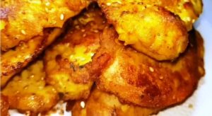 Jakmile budete připraveni na samotnou přípravu masa, připravte si pánev a nalijte do ní olej. Jakmile bude pánev rozpálená, vložte maso a smažte ho z obou stran dozlatova, dokud nebude hotové. Nakonec ho zasypejte sezamovými semínky.