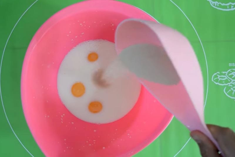 Nalijte do mísy 3 žloutky, teplé mléko a přidejte droždí.