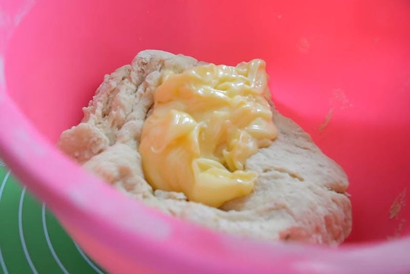 Dejte se do hnětení těsta. Elastické těsto znovu promíchejte a několik minut ho mačkejte rukama. Na konec přidejte máslo, aby koblihy byly skutečně nadýchané.