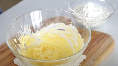 Tip: Abyste předešli vzniku hrudek v těstu, mouku se škrobem prosejte.