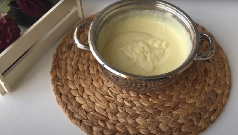 Do rendlíku si nalijte mléko a rozmíchejte v něm metličkou škrob, mouku, žloutek a cukr. Pak tekutinu vařte na mírném plamenu, dokud nezhoustne. Nakonec ještě přisypte vanilkový cukr a odstavte z plotny. Krém přikryjte potravinovou fólií a nechte chladnout. Dále se pusťte do přípravy korpusů na mini éclairy.
