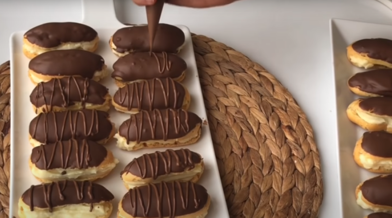 Mini éclairy s vanilkovým krémem a čokoládovou polevou - postup přípravy