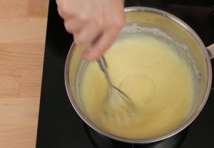 Není to těsto, co se zpracování jako první, ale je to pudink. Ten díky práškovému stavu vznikne jednoduše. Základem je mléko, ve kterém se ještě za studena rozmíchá pudinkový prášek. Dále se přidá cukr a vše se začne zahřívat. A to až do doby, než celá směs začne náležitým způsobem houstnout. Až v tu chvíli je možné vypnout sporák a pudinkový krém odstavit z plotny.