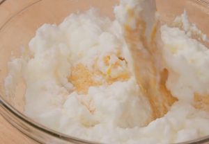 Když pudink chladne, je možné začít připravovat klasické těsto. První jsou na řadě vejce. Oddělí se žloutky od bílků a ty se vyšlehají se špetkou soli do tuhého sněhu. V druhé míse se následně vyšlehají žloutky. A to společně s klasickým i vanilkovým cukrem. Do směsi se přidá také olej a dále mouka, další ingredience a samozřejmě i samotné bílky.