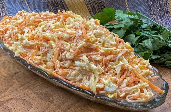 Mrkvový salát z korejské mrkve a krabích tyčinek - postup přípravy