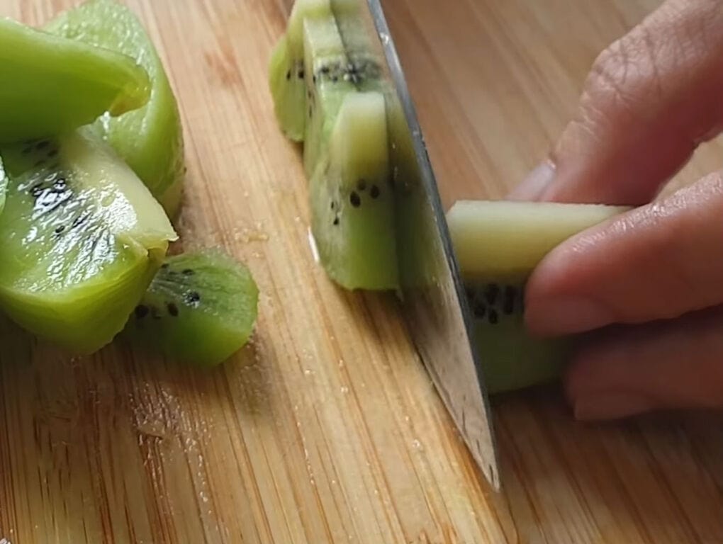 Umyjte a případně oloupejte ovoce a nakrájejte ho na menší kousky.