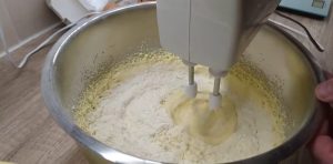 Máslo a vajíčka vyndejte alespoň půl hodiny před přípravou z lednice, aby obojí získalo pokojovou teplotu a máslo změklo a zvláčnělo. Pak máslo vložte do mísy, zasypejte ho cukrem a vyšlehejte ho do pěnivé konzistence. Přidejte postupně dvě vajíčka, přičemž každé z nich smíchejte s máslovou směsí dohladka, než přidáte další. Přes jemné sítko pak postupně prosévejte do mísy hladkou mouku spolu s práškem do pečiva. Když je směs opět hladká, vyklepněte k ní zbylá tři vajíčka a znovu je důkladně zapracujte do hmoty.