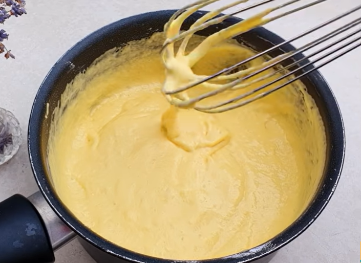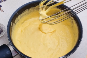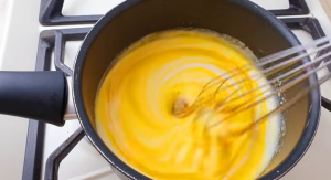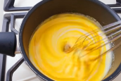 Začněte vejci. Rozklepněte je do hrnce a přidejte také veškerý cukr. Pomocí metličky začněte míchat, aby se cukr začal rozpouštět a vajíčka byly dokonale rozšlehány. Když jsou bílky se žloutky spojeny, můžete přidat další ingredienci v podobě kefíru. Promíchejte, přidejte také špetku soli a směs na lívance začněte pozvolna zahřívat na sporáku. Za stálého míchání se snažte vytvořit teplou, ale zároveň ne extrémně horkou směs.