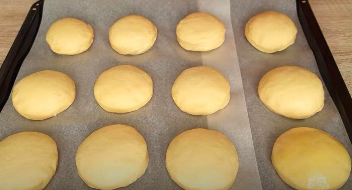 Také namažte koblihy rozšlehaným vejcem a vyskládejte na plech vystlaný pečícím papírem.