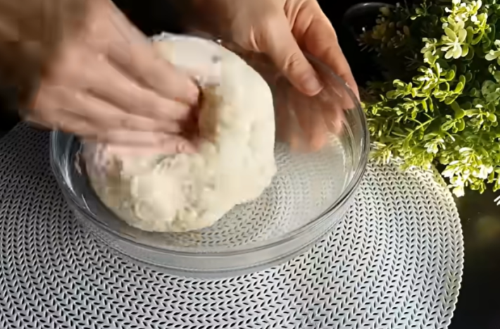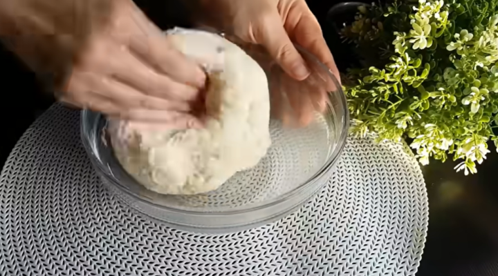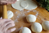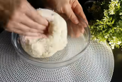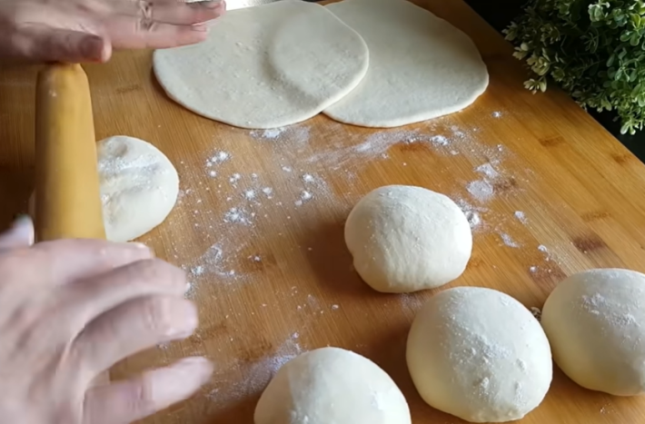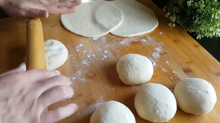 Výsledné těsto by mělo být krásně hladké a nadýchané a nemělo by se vůbec lepit. Nechte ho v míse vykynout přikryté potravinářskou folií jednu až dvě hodiny, dokud nezvětší svůj objem zhruba na trojnásobek původní velikosti. Těsto rozdělte na sedm stejně velkých dílů. Vyklepněte je na vál a posypte trochou mouky.