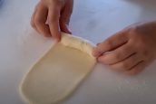 Z těsta udělejte zhruba 18 menších bochánků, přičemž z každého zformujte pomyslný váleček. Přikryjte je a nechte 15 minut kynout. Pak z každého válečku rozválejte dlouhý pruh a srolujte ho jako roládu. Dejte je na plech vyložený pečicím papírem, přikryjte a nechte 15 minut kynout.