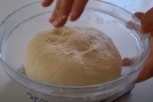 Dejte do zadělávací misky droždí, přilijte vlažné mléko a přidejte cukr. Vše promíchejte, poté přidejte 1 vejce a 1 bílek z dalšího vejce, druhý žloutek si schovejte. Přisypejte hladkou mouku a lžičku soli. Vypracujte lesklé a nelepivé těsto, poté do něho zapracujte změklé máslo, přikryjte ho a nechte 40 minut kynout.