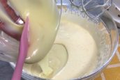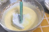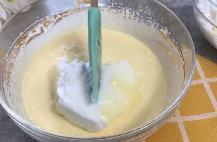 Poté do žloutkové směsi postupně po lžících přidejte bílkovou pěnu a dokonale ji do ní vmíchejte. Vzniknout by měla poměrně hustá, jemná a velmi nadýchaná směs. Do té můžete v případě potřeby vmíchat například vanilkový cukr či aroma nebo také čerstvě nastrouhanou citronovou kůru, která celý dezert nádherně provoní. Není to však podmínkou.