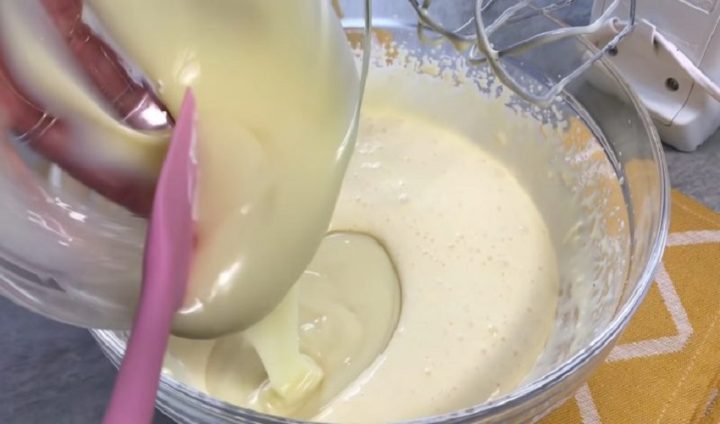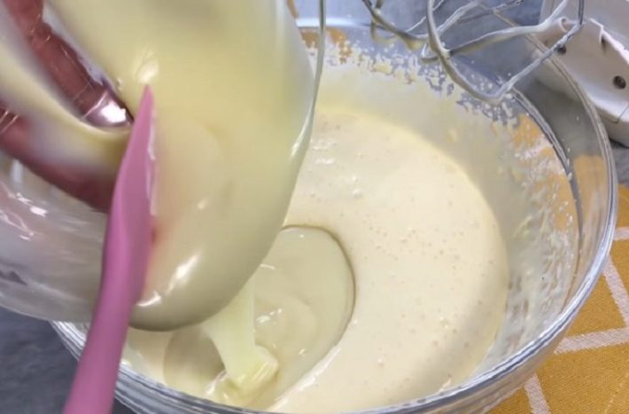 Nejprve si připravte dvě středně velké mísy, do kterých oddělte vaječné žloutky od bílků. Bílky poté vyšlehejte do husté bílé pěny. Žloutky naopak smíchejte se smetanovým sýrem a mixérem vyšlehejte hladký krém. K tomu poté přidejte kondenzované mléko a opět řádně promixujte.