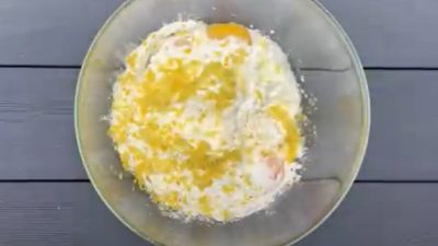 Vaječné žloutky smíchejte s jogurtem, moukou, kypřicím práškem do pečiva a kukuřičným škrobem. Přidejte sůl a citronovou kůru.