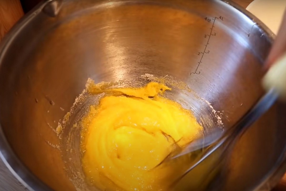 Vyklepněte čtyři vajíčka a oddělte bílky a žloutky do zvláštních misek. Nejprve si k ruce vezměte tu žloutkovou, přidejte do ní cukr a vyšlehejte obojí do světlé pěny.