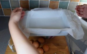 Plech nebo zapékací misku s vysokými stěnami vyložte pečicím papírem a troubu zapněte, aby se předehřála na 170 °C. Příprava koláče je totiž velmi snadná a rychlá, a kdybyste rozehřívali troubu až po zadělání těsta, akorát byste se zdržovali.
